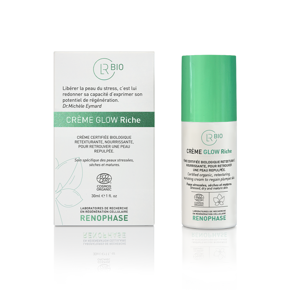 De Crème Glow Riche maakt deel uit van de nieuwe revolutionaire biologisch gecertificeerde productlijn van Renophase. Deze lijn bevat biologisch actieve cosmeceuticals die de impact die stress op de huid heeft gaat neutraliseren en in balans brengen. Zo krijg je terug een mooie, gezonde, egale en gerevitaliseerde huid.